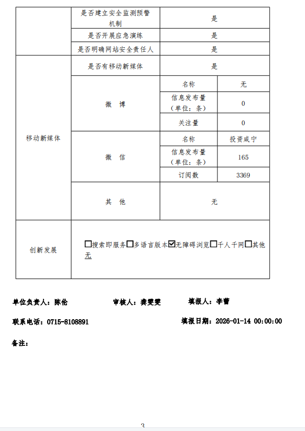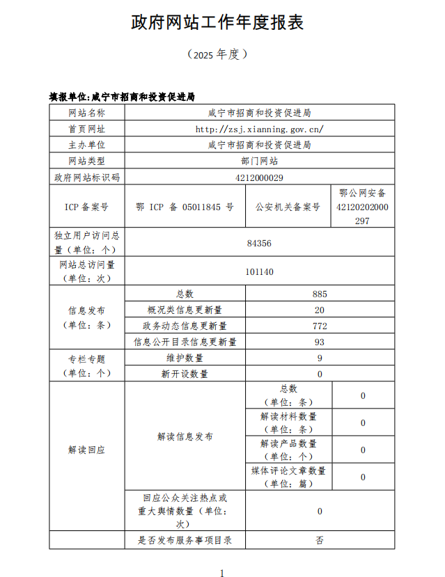 名       称: 咸宁市招商和投资促进局政府网站工作年度报表(2025年度) 发布日期: 2026年01月14日